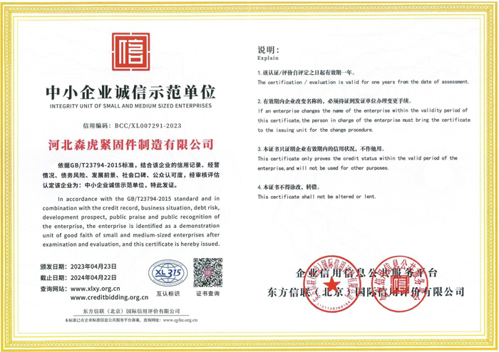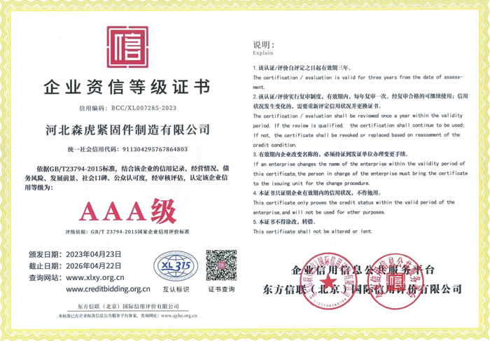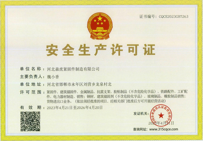 河北森虎緊固件制造有限公司成立于2011年,是建廠較早的緊固件企業(yè)。西臨京廣線,東臨京深高速,地理位置優(yōu)越,交通便利。 主要生產(chǎn):化學(xué)錨栓、機(jī)械錨栓、定型化學(xué)錨栓、高強(qiáng)度8.8級(jí)化學(xué)錨栓、自切底機(jī)械錨栓、車修壁虎,膨脹螺栓,植筋膠。 質(zhì)量方針:先進(jìn)技術(shù)、科學(xué)管理、優(yōu)良品質(zhì)、用戶滿意; ...